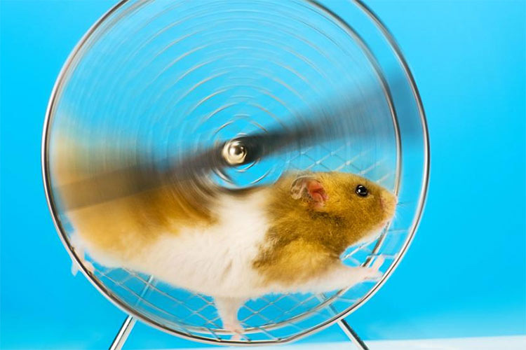 Хомячок в клетке тоже куда-то бежит по вращающемуся колесу. Ничего не напоминает?